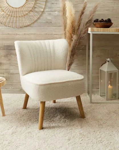 Fauteuil bouclette Erika blanc/marron - 70x72x59 cm