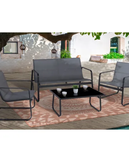 Salon de jardin textilène 2 places gris