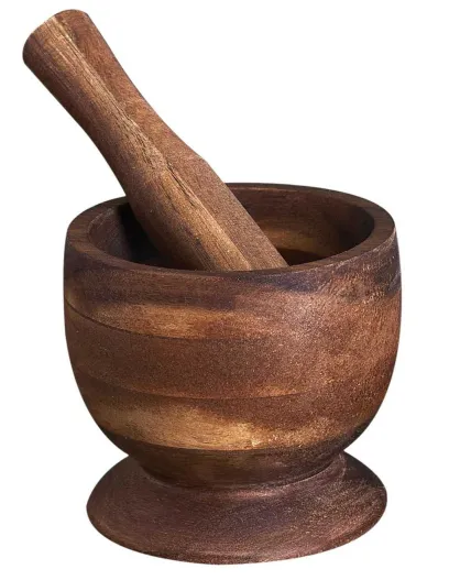 Mortier et pilon en Acacia marron - 12x10.5x12 cm