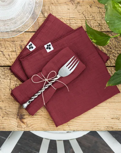 3 Serviettes de table Gaze de coton Gaïa lie de vin
