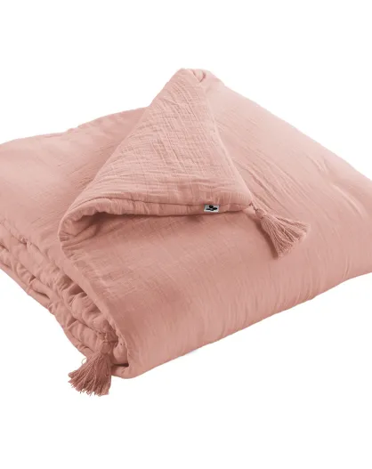 Bout de lit Gaze de Coton Gaïa rose pêche