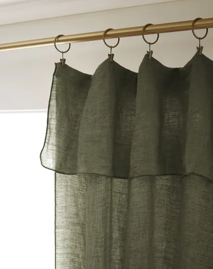 Rideau ajustable + 8 anneaux pince Lin lavé Soline thym