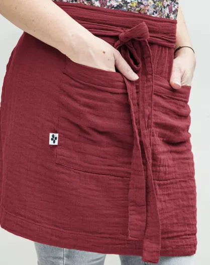 Tablier serveur Gaze de coton Gaïa lie de vin