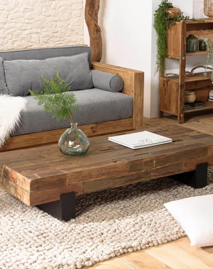 Table basse poutres bois massif Leonce bois - 160.5x63.5x30.5 cm