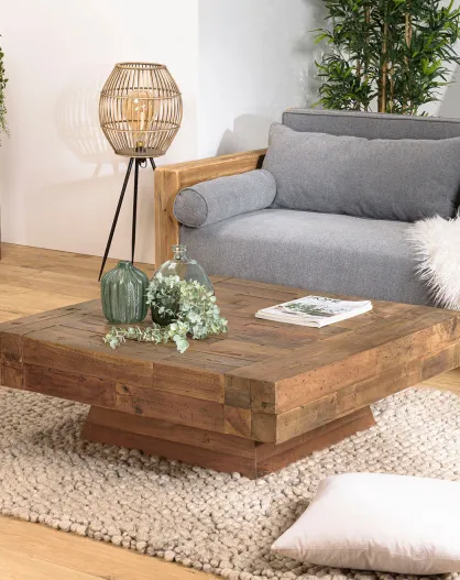 Table basse carrée bois massif Leonce bois - 104.5x104.5x35 cm