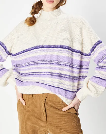 Pull en Laine & Mohair mélangés Lamar rayé écru/violet