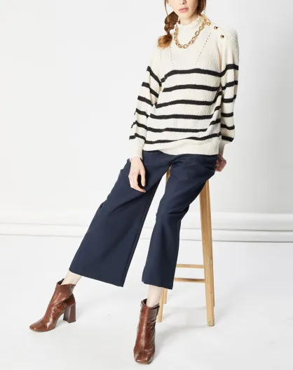 Pull en Laine & Mohair mélangés Neddy rayé beige/noir