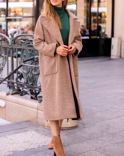 Manteau en Laine mélangée Villy pied-de-poule beige