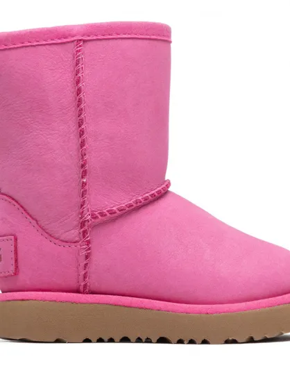 Bottes fourrées Laine en Velours de Cuir Classic Weather Short rose