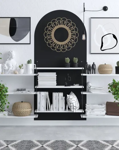 Bibliothèque lungo blanc/noir - 85x216x20 cm