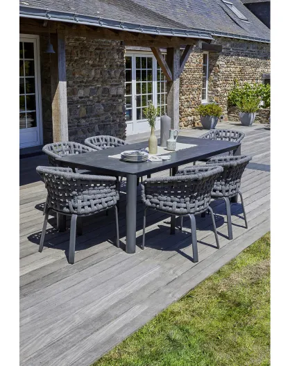 Ensemble de jardin Table Camargue + 6 Fauteuils gris anthracite