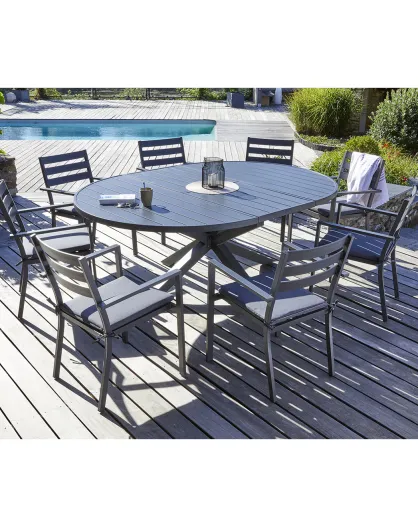 Ensemble de jardin Table PELOSA-TB200 + 8 fauteuils PELOSA-FT empilables gris anthracite