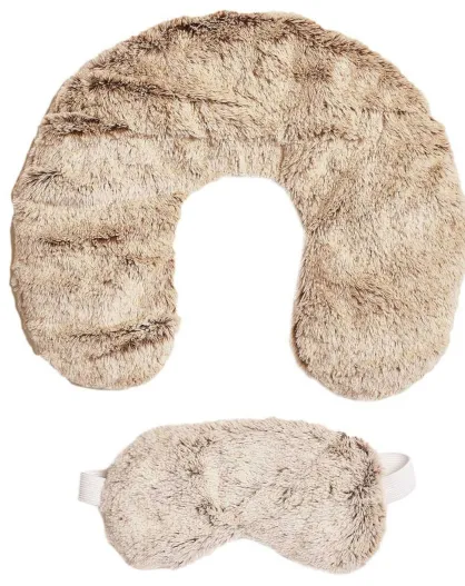 Coffret tour de cou + masque micro ondable beige - 24x16 cm
