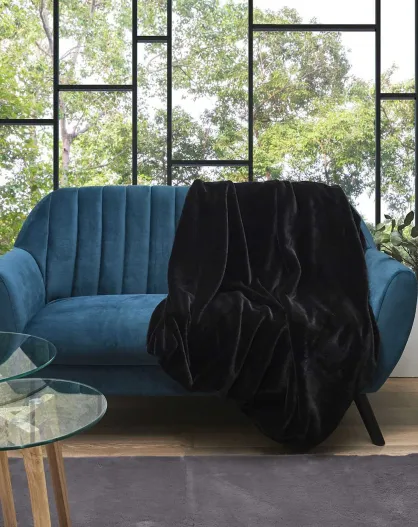 Plaid imitation fourrure Opulence noir - 120x150 cm