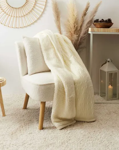 Plaid sherpa torsade beige - 120x150 cm
