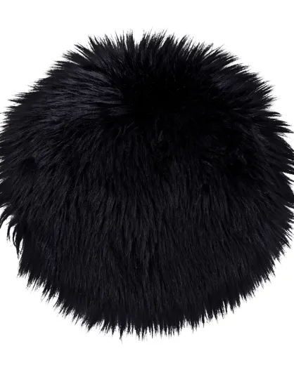 Galette en peau lainée artificielle noire - D.35x6.5 cm