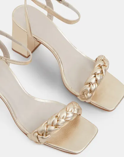 Sandales en Cuir à bride tressée dorées - Talon 7 cm
