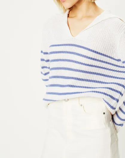 Pull polo en Laine & Cachemire Fano à rayures bleu/écru