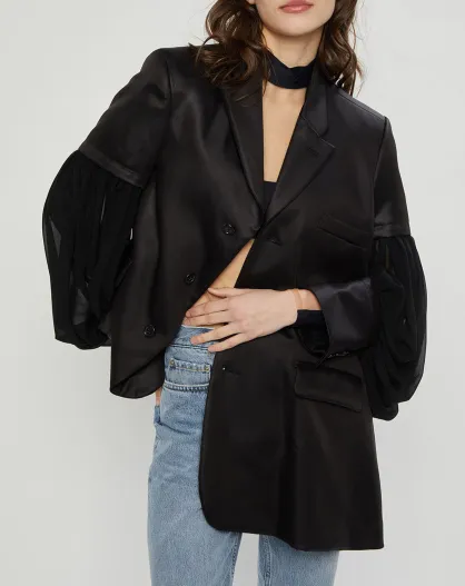 Veste satinée bimatière noire