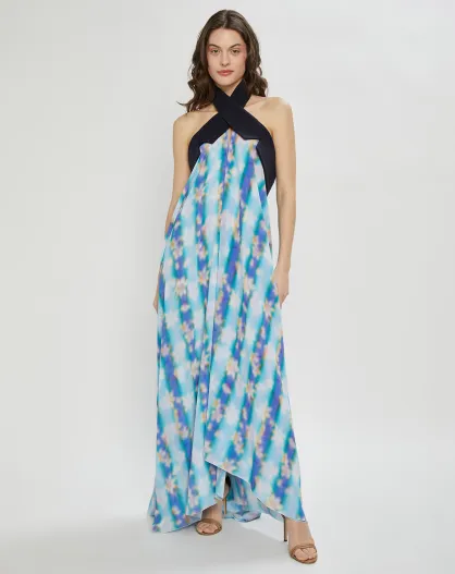 Robe en Crepon Wrap imprimée bleue