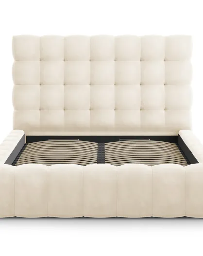Lit avec coffre de rangement Bali Velours beige clair - 140x200 cm