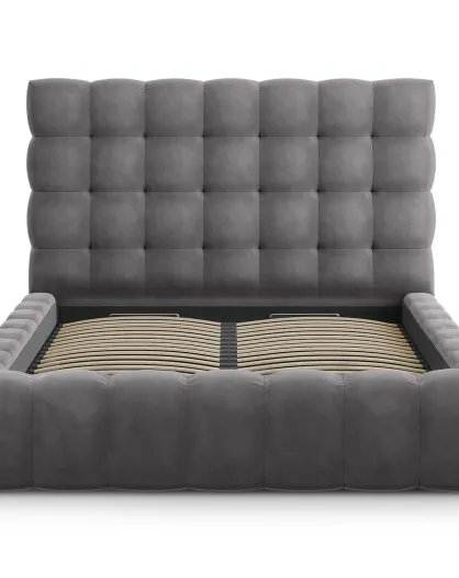 Lit avec coffre de rangement Bali Velours gris - 140x200 cm