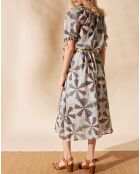 Robe courte imprimée en soie avec fronces bleu/rouge