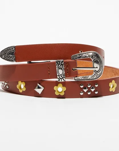 Ceinture fine en Cuir à clous marron