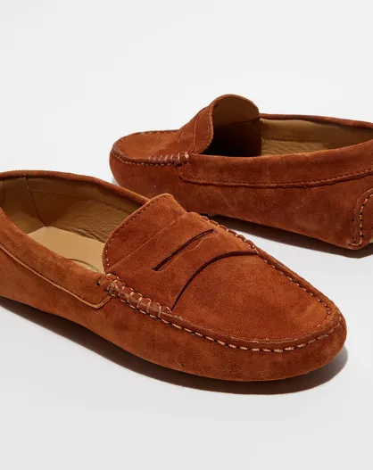 Mocassins en Velours de Cuir Jade terracota