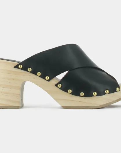 Mules sabots en Cuir Mahaut noires - Talon 8 cm