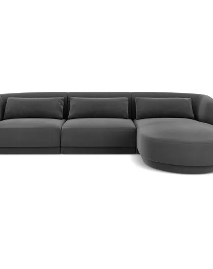 Canapé d'angle Droit Velours Tulum 4 Places gris - 259x155x74 cm