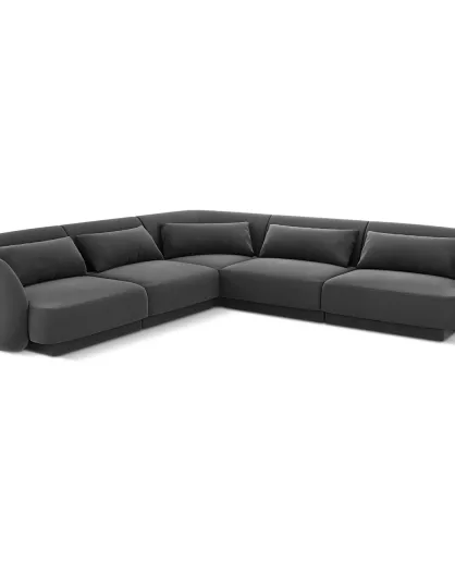 Canapé d'angle Réversible Velours Tulum 5 Places gris - 252x252x74 cm
