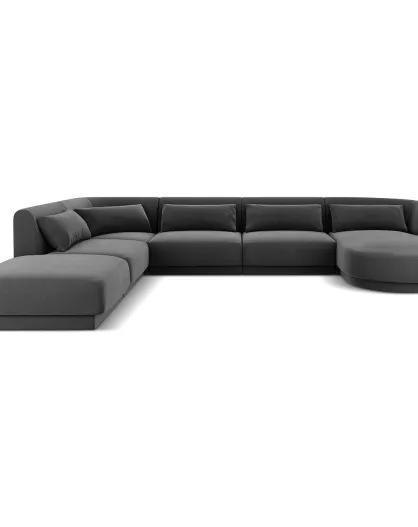Canapé d'angle Panoramique Gauche Velours Tulum 6 Places gris - 327x245x74 cm