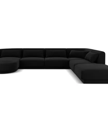 Canapé d'angle Panoramique Droit Velours Tulum 6 Places noir - 327x245x74 cm