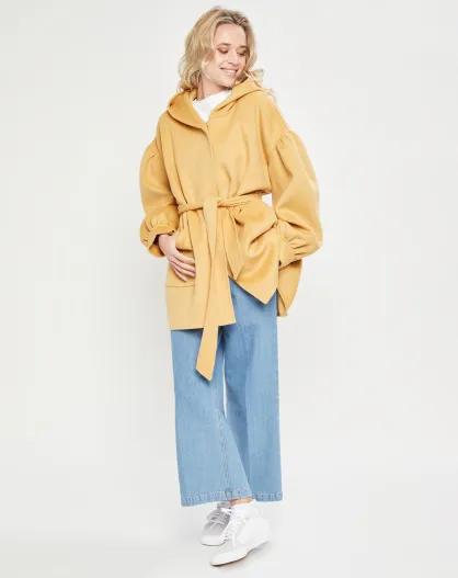 Manteau 3/4 léger 100% Laine à capuche ocre