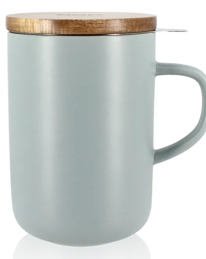Tisanière avec couvercle en grès et acacia Juliet perle - 475 ml