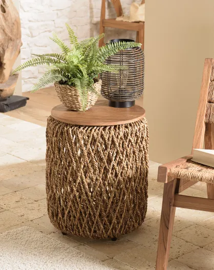 Table d'appoint ronde en tissage de fibre de cocotier Sixtine bois - 38x38x46.5 cm