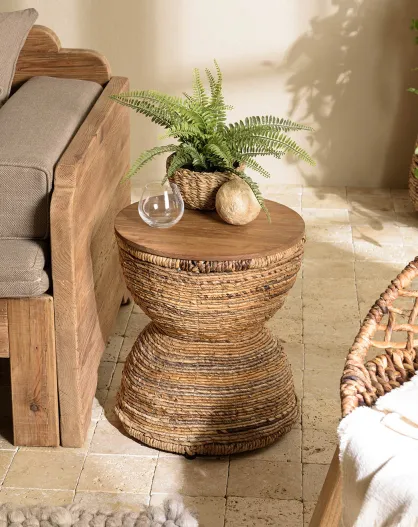 Tabouret assise amovible en bois de teck recyclé Sixtine bois - 41x41x46 cm