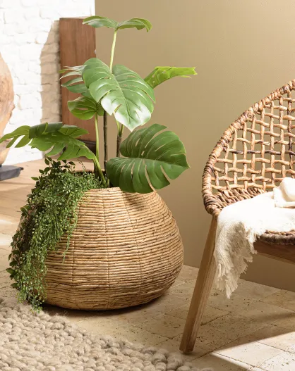 Cache pot petit modèle en tissage d'abaca naturel Sixtine naturel - 60x60x41 cm