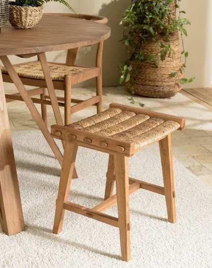 Tabouret assise en tissage d'abaca naturel Sixtine bois - 45x36x47.5 cm