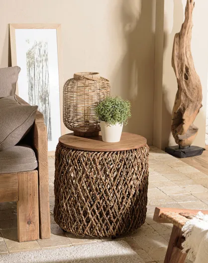 Table d'appoint ronde en tissage de fibre de cocotier Sixtine bois - 49x49x47 cm
