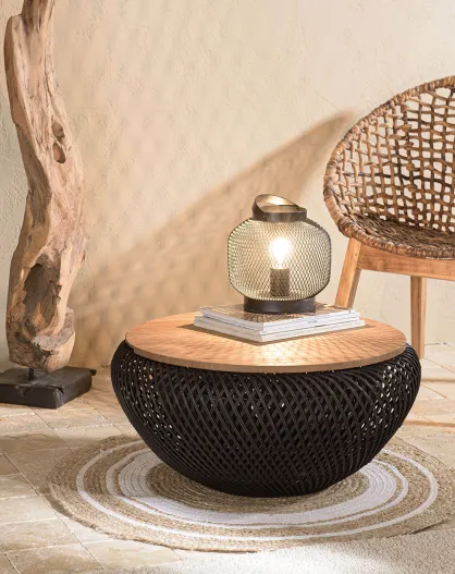 Table basse ronde en rotin noir plateau amovible Sixtine bois/noir - D.65x32 cm