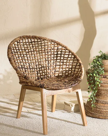 Fauteuil dossier arrondi assise en abaca tressé Sixtine bois - 77x78x80 cm