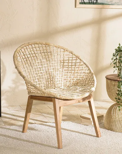 Fauteuil beige dossier arrondi assise en abaca tressé Sixtine naturel - 77x78x80 cm