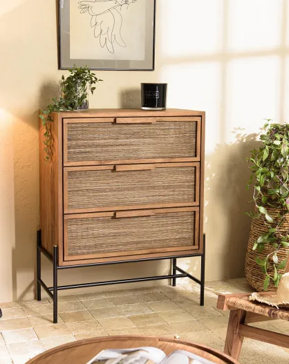 Commode 3 tiroirs en bois de teck recyclé Sixtine bois - 79.5 x40x100 cm