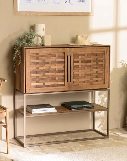 Buffet en bois de teck recyclé 2 portes Sixtine bois - 105x40x110 cm