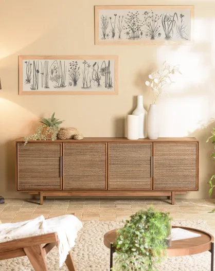 Buffet en bois de teck recyclé naturel 4 portes Sixtine bois - 180x40x63.5 cm