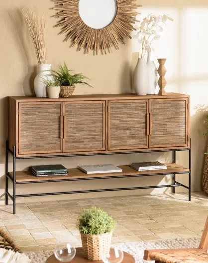 Buffet 4 portes en bois de teck recyclé Sixtine bois - 170x40x100 cm