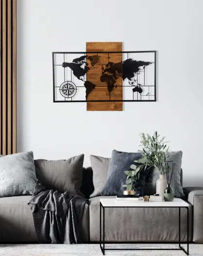 Accessoire mural en bois décoratif noyer/noir - 85x58 cm