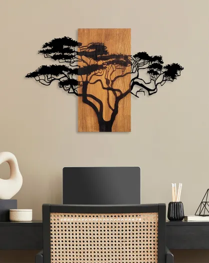 Accessoire mural décoratif en bois noyer/noir - 90x58 cm